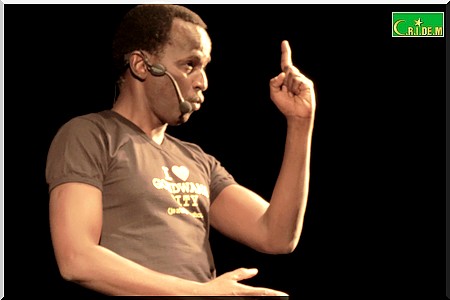 Il consacre les premières minutes de son spectacle à raconter que c’est sa première fois d’être en Mauritanie, confie qu’il a été frappé sur le ton de l’humour par la courtoisie des mauritaniens mais se moque d’eux lorsqu’il apprend par le biais du public qu’il n’y avait pas de boites de nuits à Nouakchott. «Je comprend maintenant pourquoi vous marchez comme ça… », se gausse-t-il.