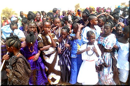 Les écoliers et écolières de l’établissement fondé en 1973 selon le directeur de Fondou 1, étaient vêtus en tenues traditionnelles (boubous teints à l’indigo et pagnes traditionnels) et lèvres tatouées en plus, le tout pour exalter les valeurs authentiques de la société traditionnelle Peulh.