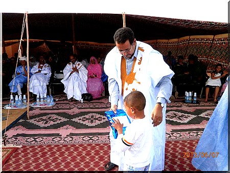 Le wali du Tiris zemmour, Général Ahmedou Bamba ould Baya a présidé ce vendredi soir, 7 juin 13 à F’Dèrik, une cérémonie de fin d’année scolaire organisée par le député de la circonscription Khaddad ould Moctar pour primer les élèves méritants.