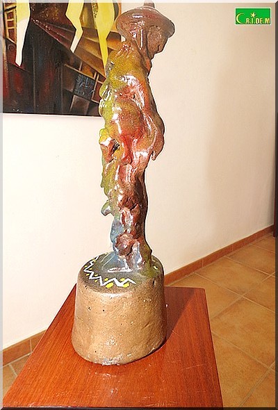 L’exposition s’ouvre sur une sculpture aux formes déliées et secrètes. Il s’agit de "Jeune fille" sculptée en deux versions. "On ne sait pas si c’est une mauresque, une halpoular, une Wolof ou une Soninké", note Mokhis qui explique que l’essentiel n’est pas de regarder mais de sentir fondre les identités et les différences dans le moule de l’unicité.