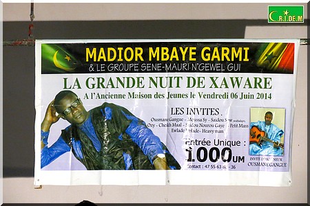 Lors de cette soirée baptisée "La grande nuit de xawaré", Madior Mbaye Garmi a mis les petits plats dans les grands plats pour contenter son public en majorité composé de grandes dames et de jeunes filles. Tout comme il a arrangé de nouveaux titres façonnés par son groupe composé de musiciens mauritaniens et sénégalais qui ont fait le déplacement jusqu’à Nouakchott.