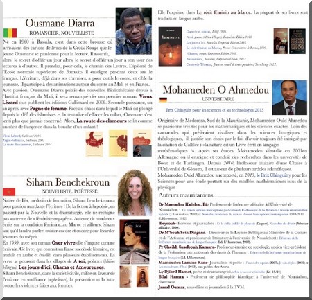 Il s’agit de la Marocaine Siham Benchekroun, de la Francomauritanienne Marième Mint Derwich, du Tunisien Samir Marzouki, du Malien Ousmane Diarra et de la Sénégalaise Sokhna Benga. Sans oublier la présence des Mauritaniens Mohameden Ould Ahmedou, professeur de mathématiques en Allemagne, Pr Cheikh Saadbouh Kamara, Beyrouk, Mamoudou Lamine Kane, Abdel Kader Mohamed, Amadou Bâ, Mamadou Kalidou Bâ, Mbouh Séta Diagana, Mohamedou Hdana, Sidi Lemjad, Ly Djibril, mais aussi des acteurs de la société civile et culturelle.