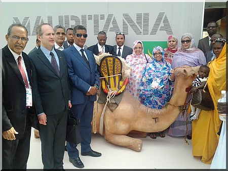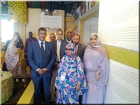 La délégation ministérielle a été accueillie par monsieur Oumar Ould Abidine Sidi, Commissaire Général du Pavillon entouré par son équipe.