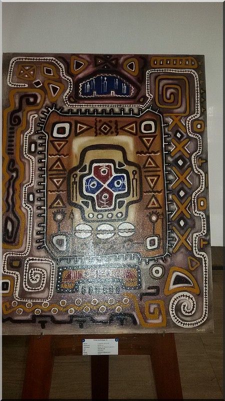 Mokhis expose une dizaine de tableaux titrés : « le saxophoniste », « le Carré magique », « le Jongleur », « le Gardien de la Cité », « équilibre dans l’espace », « le Marathonien », « sur les traces du Mahatma », « le livre sacré », « c’est tout ce qui reste ? »(Le Coran) et « l’eau source de vie ».