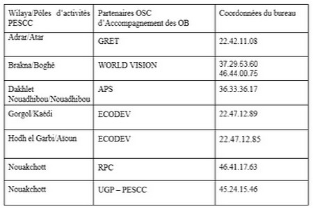 - au niveau des partenaires relais dans chaque Wilaya où le PESCC est présent (voir liste ci-dessous)