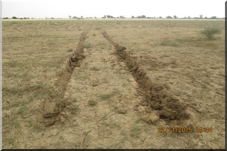 Elfoutiyou - Les traces des voitures de la gendarmerie restent encore visibles dans la cuvette. Les éléments de cette force publique censée pourtant protéger et défendre les citoyens contre l’arbitraire ont failli gravement à leur mission en provoquant et procédant délibérément à la destruction cultures de décrues qui étaient au stade de la germination et de l’émergence des premières feuilles pour certaines et de levée pour d’autres.