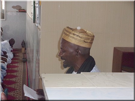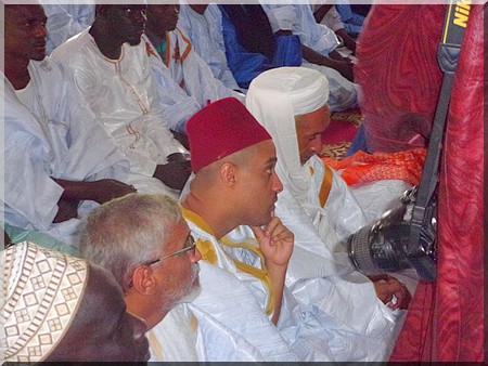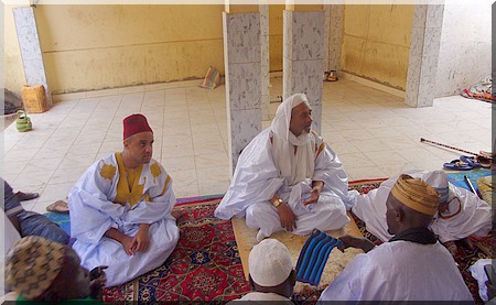 Chérif Tayib, arrière, arrière, petit fils du fondateur de la confrérie tidiane, Cheikh Ahmed Tidiane Chérif, en visite chez nous, a prié l’aïd el fitr à la deuxième mosquée de Nouakchott (de par l’âge), sise aux ilots L, avec le vieux Thierno Daouda Bâ.