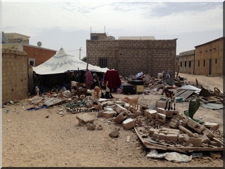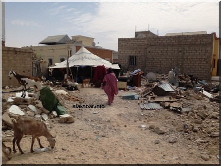 Alakhbar - La caméra suivante montre la poursuite des opérations de démolition des maisons dans le quartier de Tensoueilim, sis dans la moughataa de Dar Naim à Nouakchott, qui ont laissé des sans-abri, déterminés à demeurer au milieu des décombres.