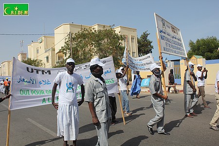 Cette année, l’Union des Travailleurs de Mauritanie (UTM) a défilé sous le slogan "augmentation des salaires et des pensions". L’occasion saisie par Khadijetou Mamadou Diallo de souligner la volonté des travailleurs de poursuivre la lutte pour la satisfaction des revendications essentielles dont l’application des textes de lois et de la réglementation du travail.