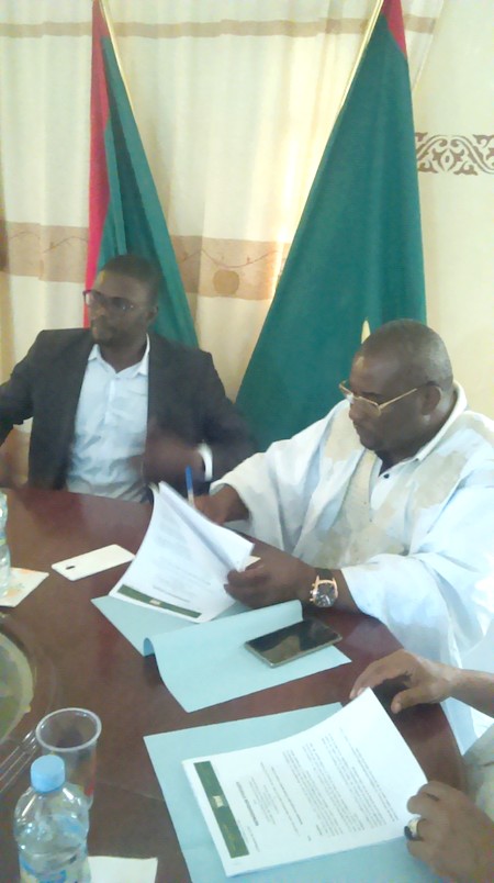 CCME - Le mardi, 15 mai 2018, a eu lieu à Rosso, région du Trarza, la signature d’un mémorandum entre le Collectif des Cadres Mauritaniens Expatriés (CCME) et la Mairie de Rosso, l’Association des parents d’élèves, l’Inspection Départementale de l’Eduction Nationale (IDEN), la Direction de l’Ecole I de Rosso, en présence du Conseiller du Wali, du Hakem de Rosso, des membres de la délégation du CCME.