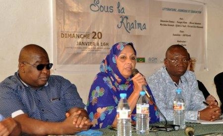 La 1ère de Sous la Khaïma du 20 janvier 2019 à Sebkha a eu pour thème : Littérature, jeunesse et éducation. Le panel était composé d’écrivains nationaux et étrangers de renoms : Kangni Alem du Togo, Grand Prix d’Afrique noire, Geneviève Damas de la Belgique, Prix des Cinq continents de la Francophonie, l’ancien commissaire de police et poète Djibril Zakaria Sall, la poétesse Marième Derwich et le cinéaste-poète Mohamed Idoumou, l’animateur hors pair en compétences de jeunesse Patrick Elis Ndoundi. La modération était assurée par le journaliste et écrivain Bios Diallo.