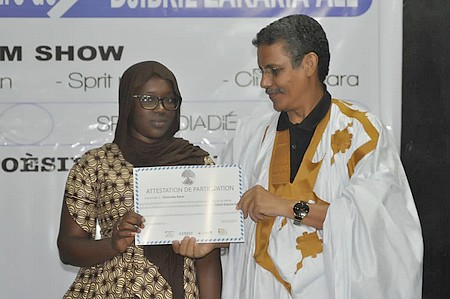 Un boubou et des babouches remis par le président de l'Association des Écrivains Mauritaniens d'Expression Française, Bouleiba Ould Maouloud à Djibril Zakaria Sall et aussi un arbre(dattier) remis par Bambi Camara(une fille de 10 ans) au vieux Djibril. Un symbole de la transmission générationnelle.