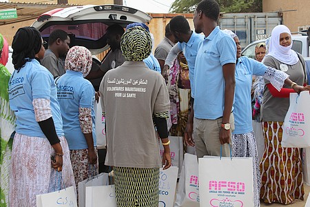 -Sponsoring de l’association "Volontaires Mauritaniens pour la Santé" pour une distribution de kits médicaux et alimentaires dans les hôpitaux de Psychiatrie, de 5ème dans la commune de Sebkha et celui de l’Amitié. Par ailleurs, grâce à ce sponsoring, ils ont procédé à des consultations gratuites en partenariat avec la Marmite du Partage lors de la 4ème grande sortie cuisine de ces derniers à la Gazra Toujounine.