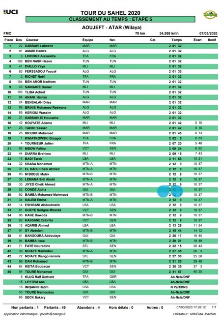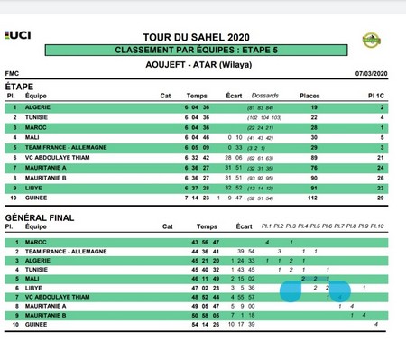 Ce sont les coureurs de l’équipe nationale marocaine. C’est un niveau assez élevé. Derrière les français, les tunisiens et même un peu les libyens ont essayé de rivaliser. Mais c’était un peu dur. Et puis, nous avons nos coureurs mauritaniens qui progressent depuis la première édition.