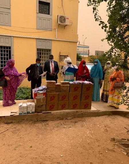 Le don a été réceptionné par le chargé de mission du ministère des affaires sociales, de l'enfance et de la famille M. Ahmed Salem Boubout et la Directrice de la promotion féminine et du genre Mme Mariem mint Ely Beiba.