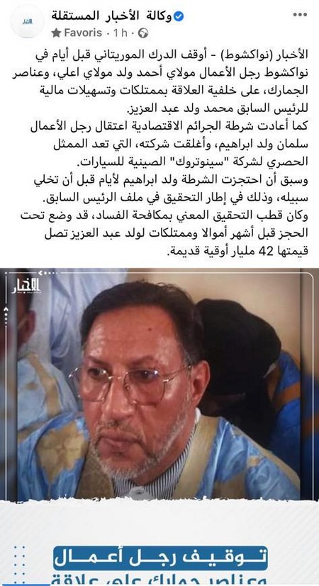 La police chargée des crimes économiques et financiers avait quant à elle interpellé l’homme d’affaires Selmane Ould Brahim et procédé à la fermeture de sa société, considérée comme étant le Représentant d’une société automobile chinoise, ajoute Al-akhbar.