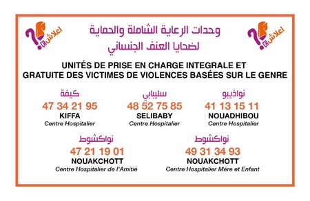 Des services d’aide aux survivant.es de violences basées sur le genre existent. En Mauritanie, cinq Unités de prise en charge des survivant.es de violences basées sur le genre (USPEC) ont vu le jour depuis décembre 2017, afin d’assurer une prise en charge intégrale et gratuite, auprès de professionnels, et en toute confidentialité.