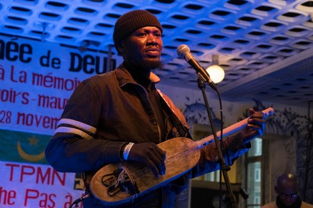 « Le 28 novembre est un jour de deuil. Nous sommes là pour témoigner notre solidarité à la famille des 28 militaires noirs mauritaniens pendus le 28 novembre 1990. Dans nos albums, nous avons toujours parlé du passif humanitaire. Tout le monde sait que c’est une question qui fait partie de notre combat pour que la justice soit faite. Partout, on réclame cette justice. C’est un signal fort de réunir des artistes mauritaniens et les voir ensemble faire quelque chose en se montrant concernés par ce qui qui s’est pas passé en 1990 », explique Mar Ba.