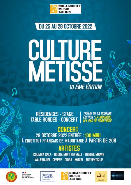 Du 25 au 28 octobre prochain à l’Institut Français de Mauritanie (IFM) se tiendra la 10e édition du FCM (Festival Culture Métisse) sous la houlette de Nouakchott Music Action(NMA) à travers le thème : « La musique n’a pas de frontière ».