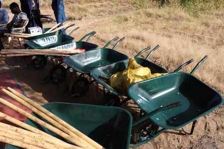 Il s’agit également de collecter volontairement par les membres et sympathisants du mouvement, de petits moyens (Semences, Brouettes, pelles, pioches, râteau, etc.) pour appuyer les coopératives locales.