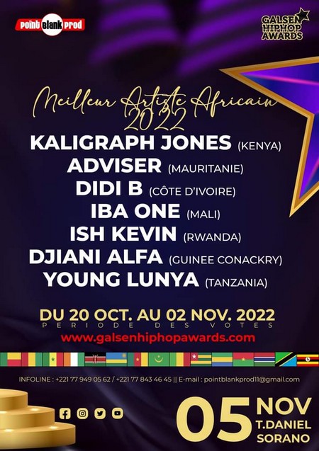 Pour rappel, le rappeur mauritanien était en compétition avec Kaligraph Jones (Kenya), Didi B (Côte d’Ivoire), Iba One (Mali), Ish Kevin (Rwanda), Djiani Alpha (Guinée Conakry) et Young Lunya (Tanzanie).