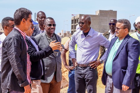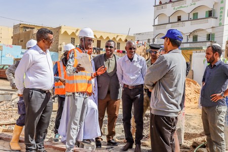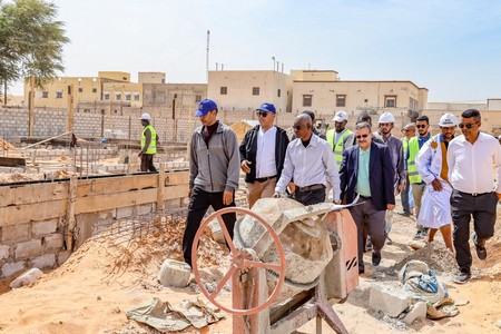 Son Excellence le Ministre était accompagné du Conseiller chargé de la communication, Monsieur Cheikh Ahmed Ould Eleiwa, du Directeur des Bâtiments et des Équipements Publics, Monsieur Brahim Ould Sghair, du Directeur Général de l’Agence de Développement Urbain, Monsieur Sidi Mohamed Ould Bouna, du Directeur technique de l’Agence, Monsieur Mohameden Ould Ahmed Salem, et des ingénieurs responsables des travaux.