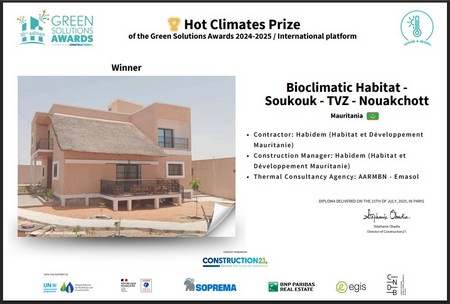 13-10-2025 00:18 - Le projet “Habitat bioclimatique de Nouakchott” de HABIDEM en lice pour les Green Solutions Awards International